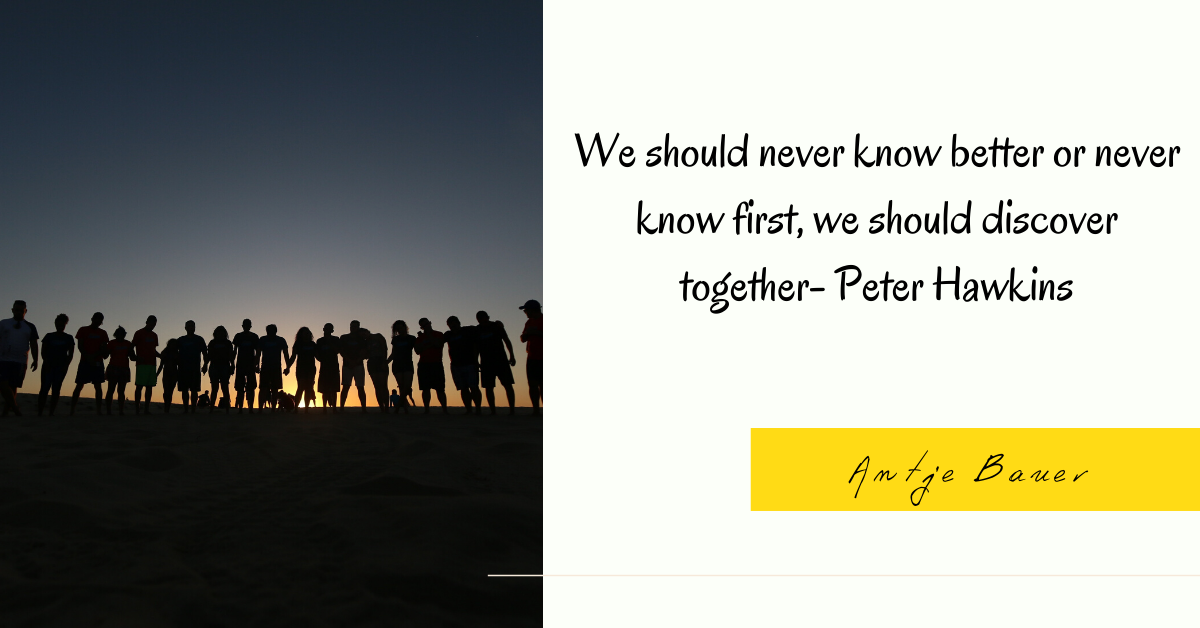 Peter Hawkins uses a very relevant phrase - "We should never know better or never know first, we should discover together".